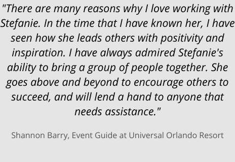 I’m passionate about my work and have been fortunate to be recognized by PR Daily with the Ragan’s 2023 Top Women in Marketing Award and the 2023 WFF Change Maker Recognition. Other industry engagements include Board and Committee roles with SKAL and Visit Orlando.
